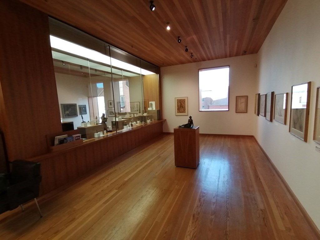 The New Gallery is a stunning contemporary gallery, completed in 2000, they’re celebrating 20 years with 20 pieces of artwork from every year. This is a timeless building that really does not show its age, with beautiful foyer and many gallery spaces. The impression I get is the architect and stakeholders have gained a great balance of the spaces within. There is a community gallery for everyone on the ground floor with windows opening out onto the street. A permanent gallery of Jacob Epstein’s work, on the middle two floors with timber clad walls and flooring to give it a more homely feeling.